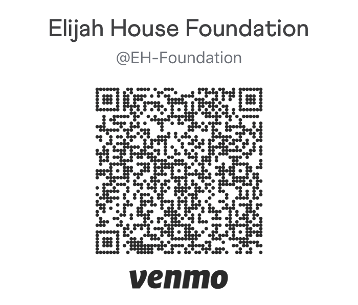 You can send us a Venmo payment by scanning the QR code below. If you would like a donation receipt, you can privately provide contact details in the Venmo message, or contact Jessica Medina at j.medina@elijahhouseliving.com or (530) 812-4252.
